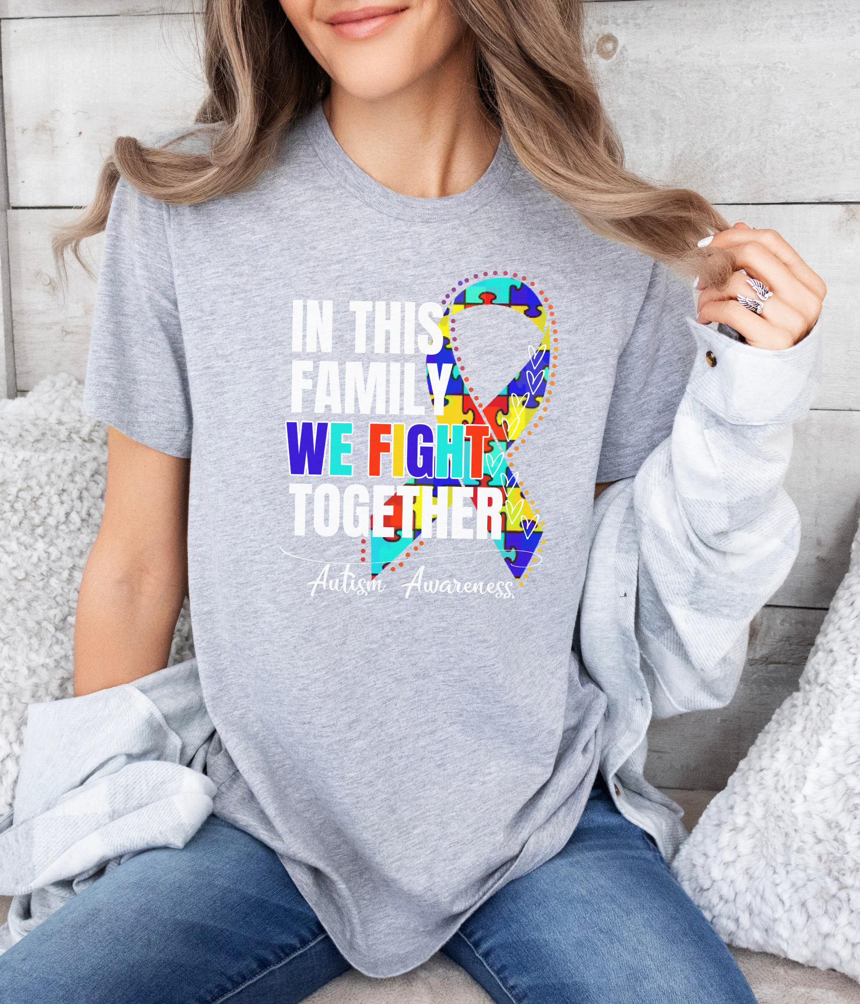 • Support your loved one in style with this Asperger's shirt. Our 'In this Family We Fight Together- Autism Awareness' unisex tee is the perfect blend of comfort and purpose.