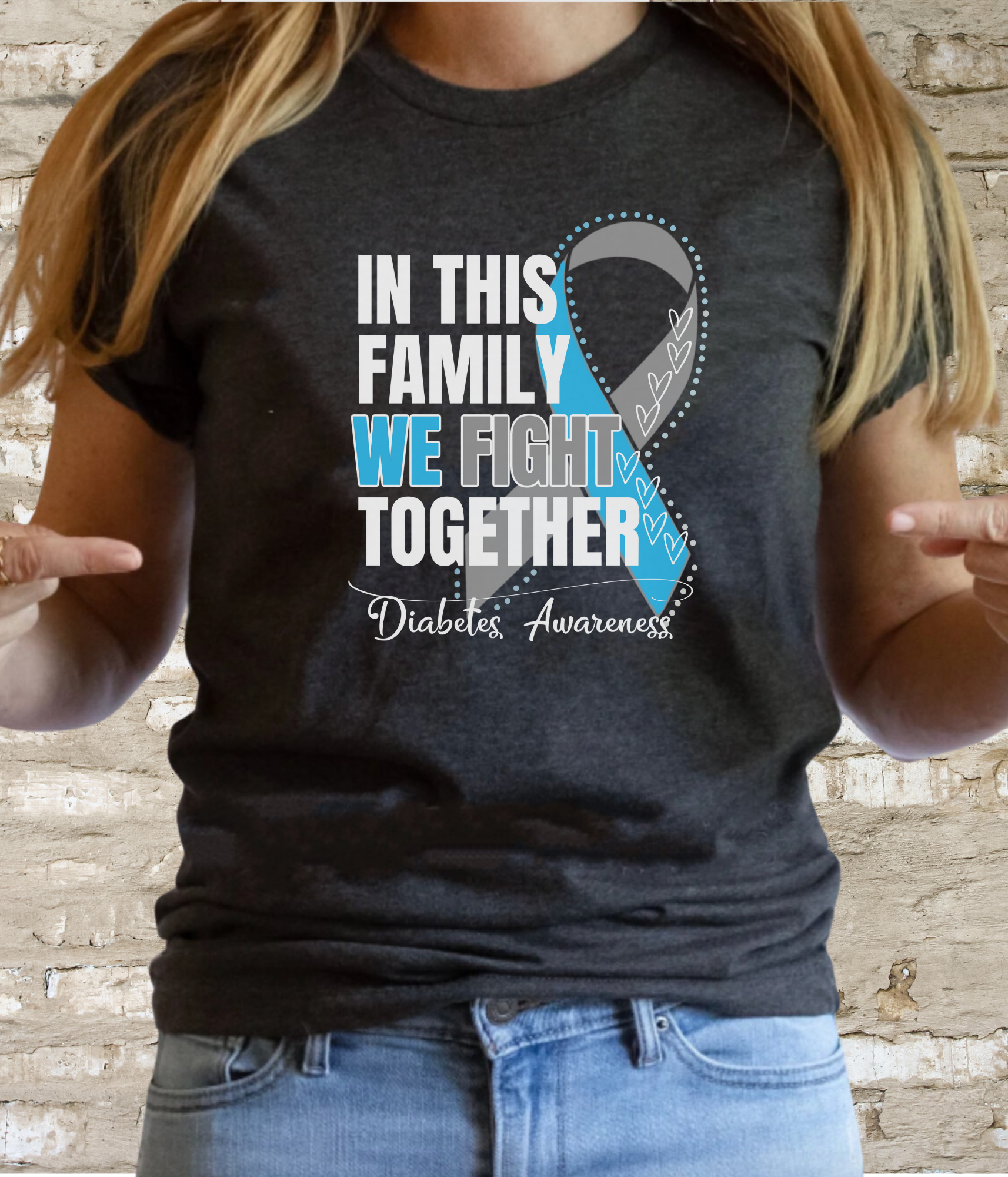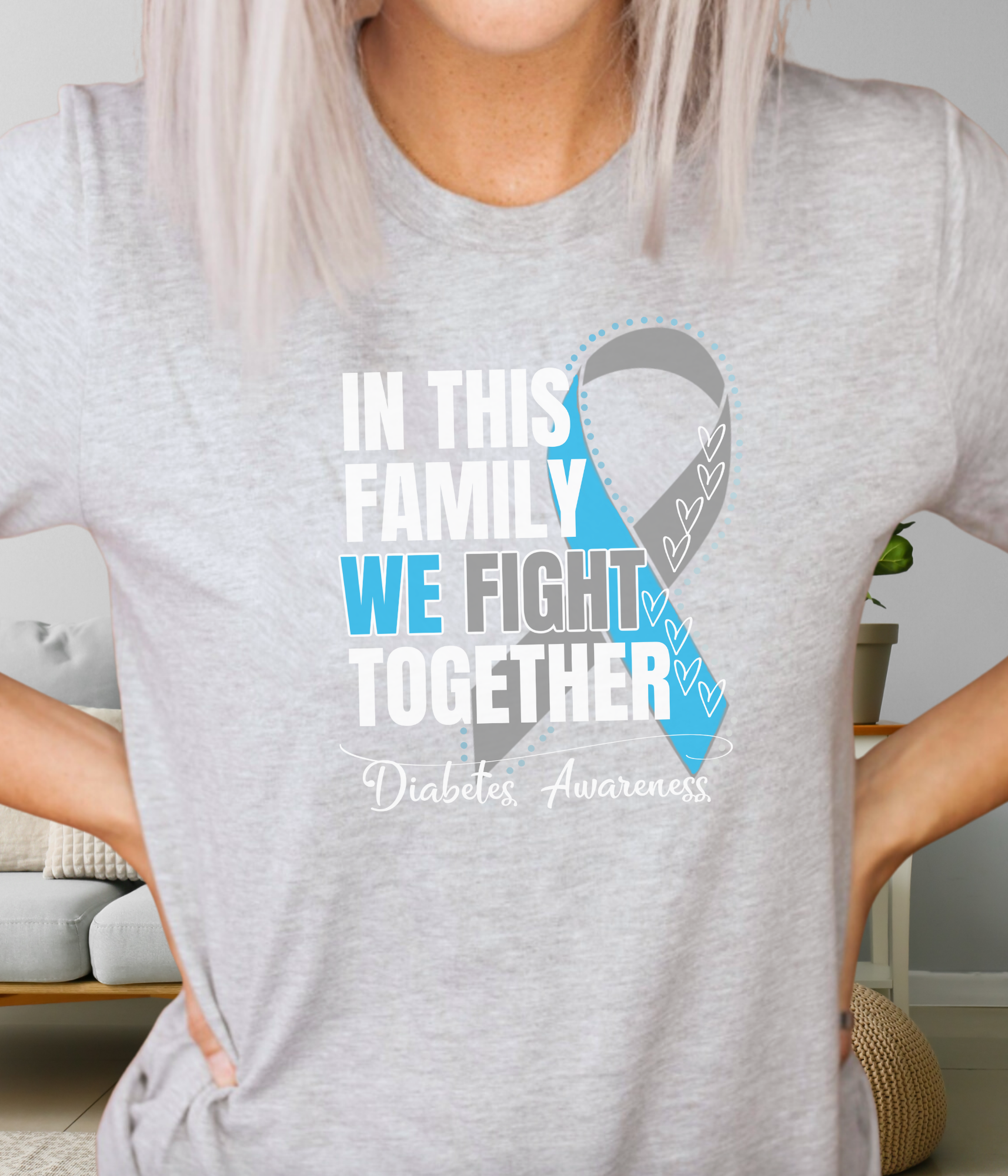 • Support your loved one in style with this Diabetes shirt. Our 'In this Family We Fight Together- Diabetes Awareness' unisex tee is the perfect blend of comfort and purpose.