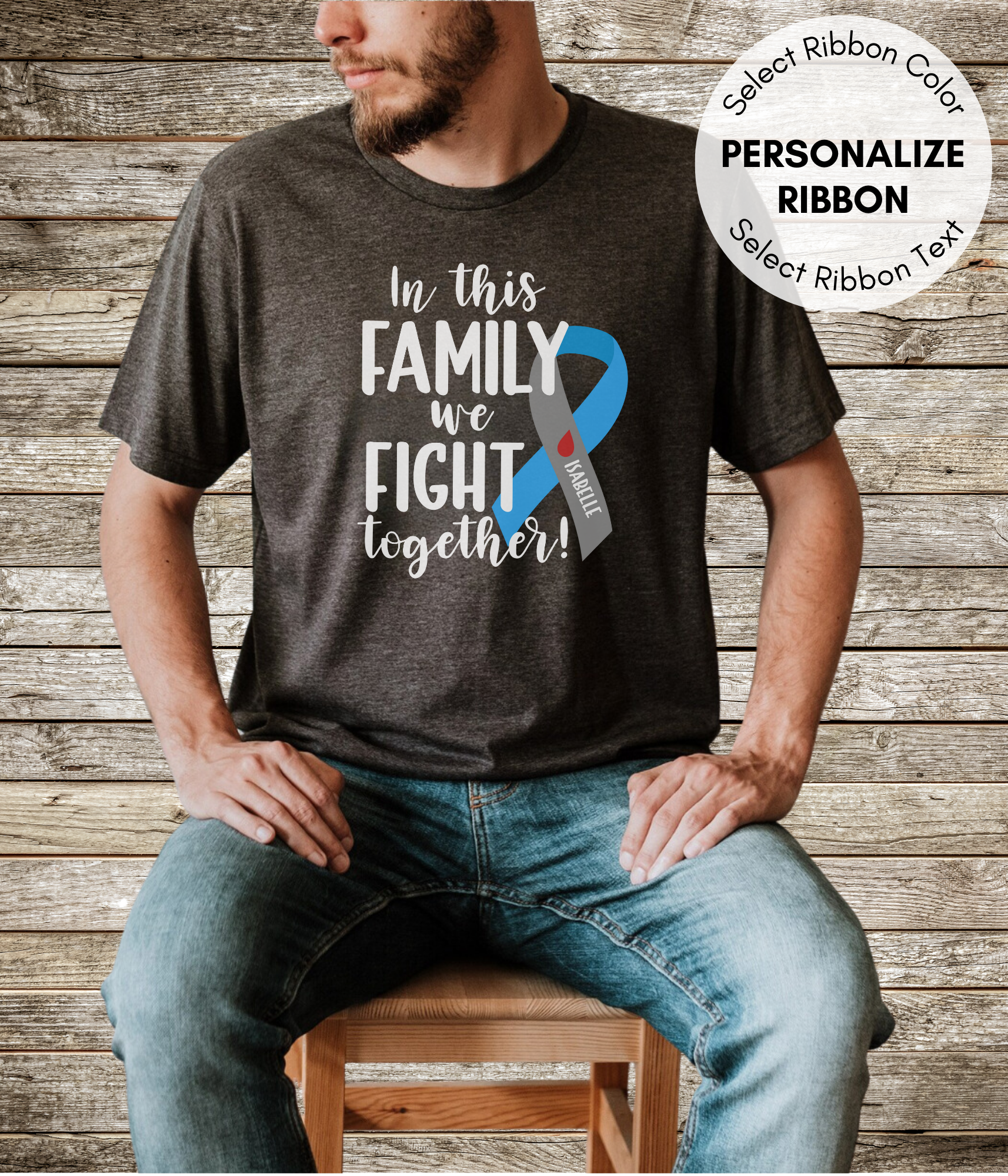 • Support your loved one in style with this Diabetes shirt personalized with their name in the ribbon. Our 'In this Family We Fight Together' unisex tee is the perfect blend of comfort and purpose. Perfect for ordering in bulk to make a large supportive statement.