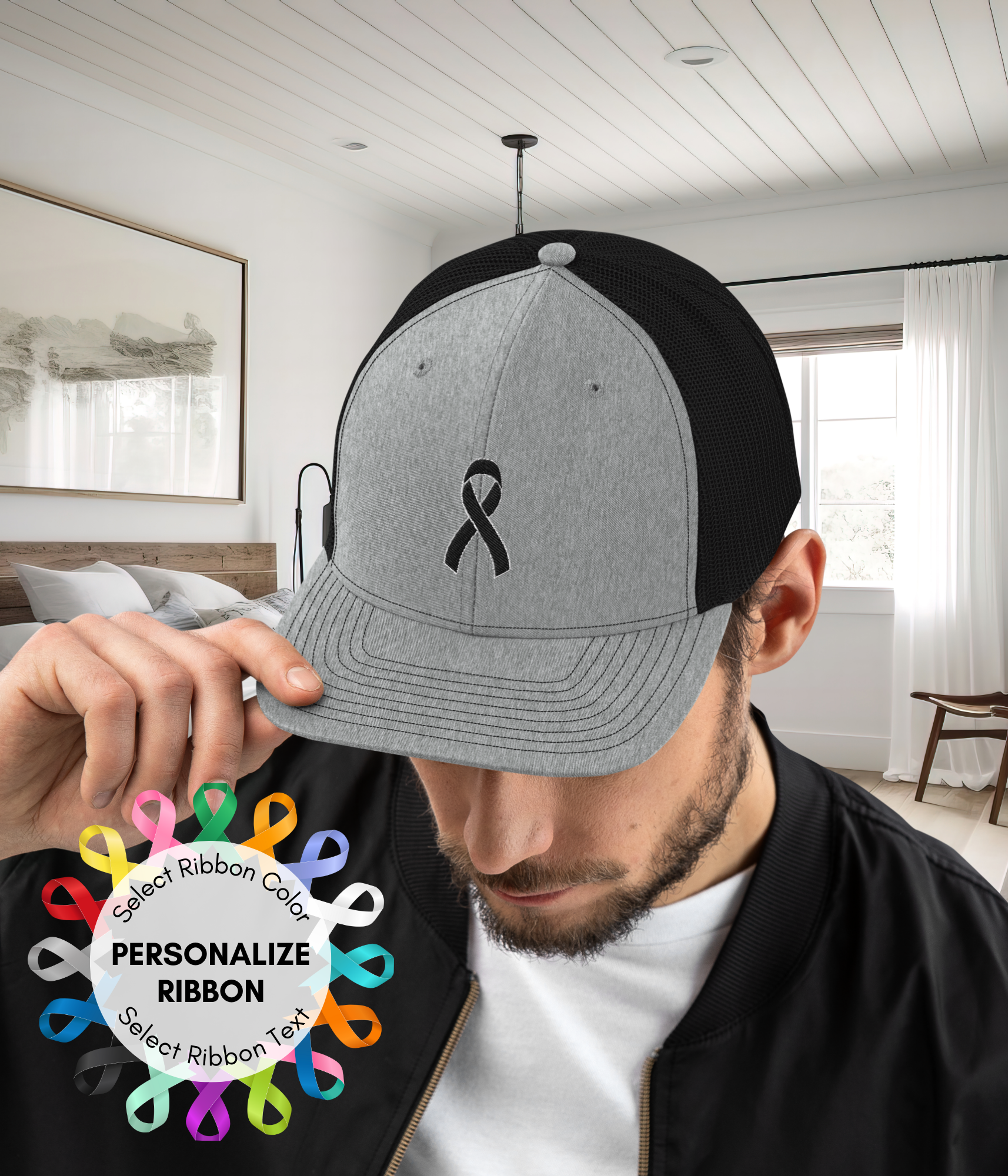 • Support your loved one in style with this custom embroidered awareness snapback trucker cap. Featuring the diagnosis unique to you or your loved one- this adjustable snapback cap is available in several color combinations. Order one or order in bulk to make a large supportive statement.