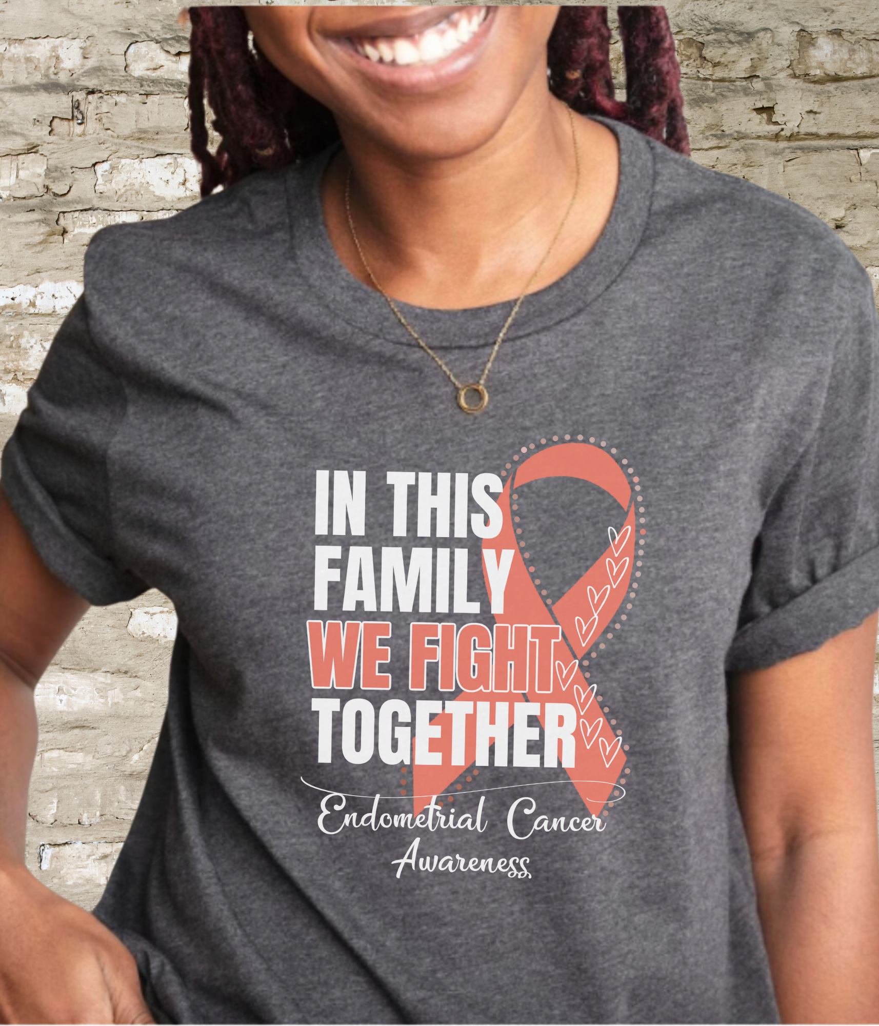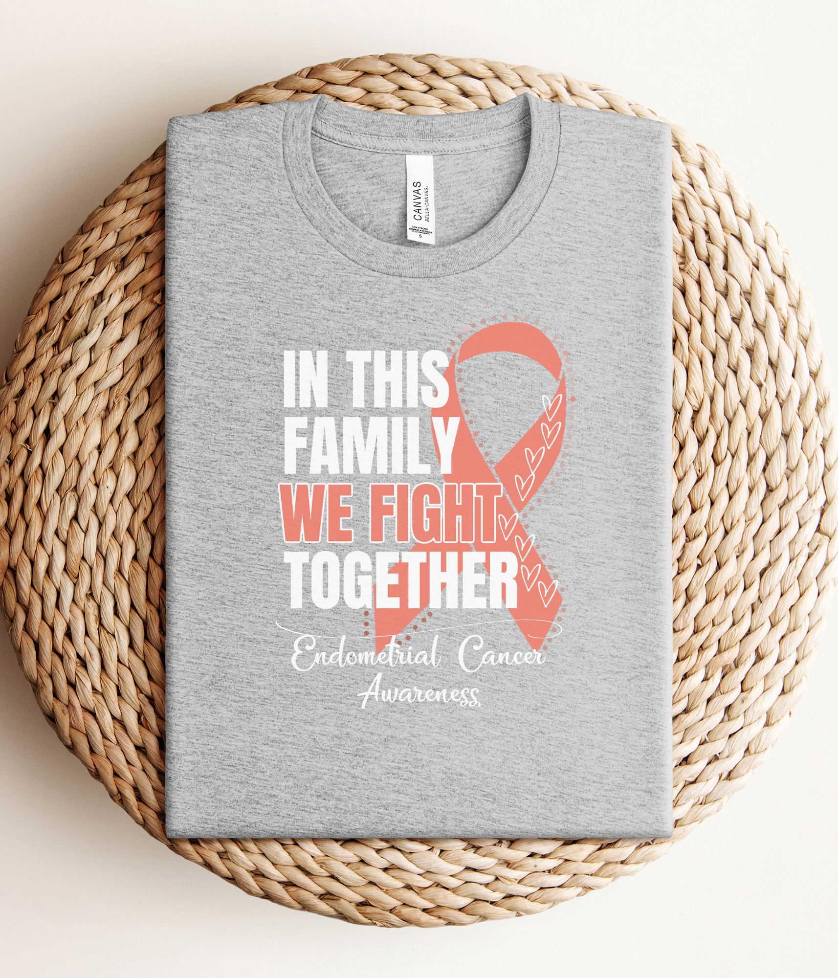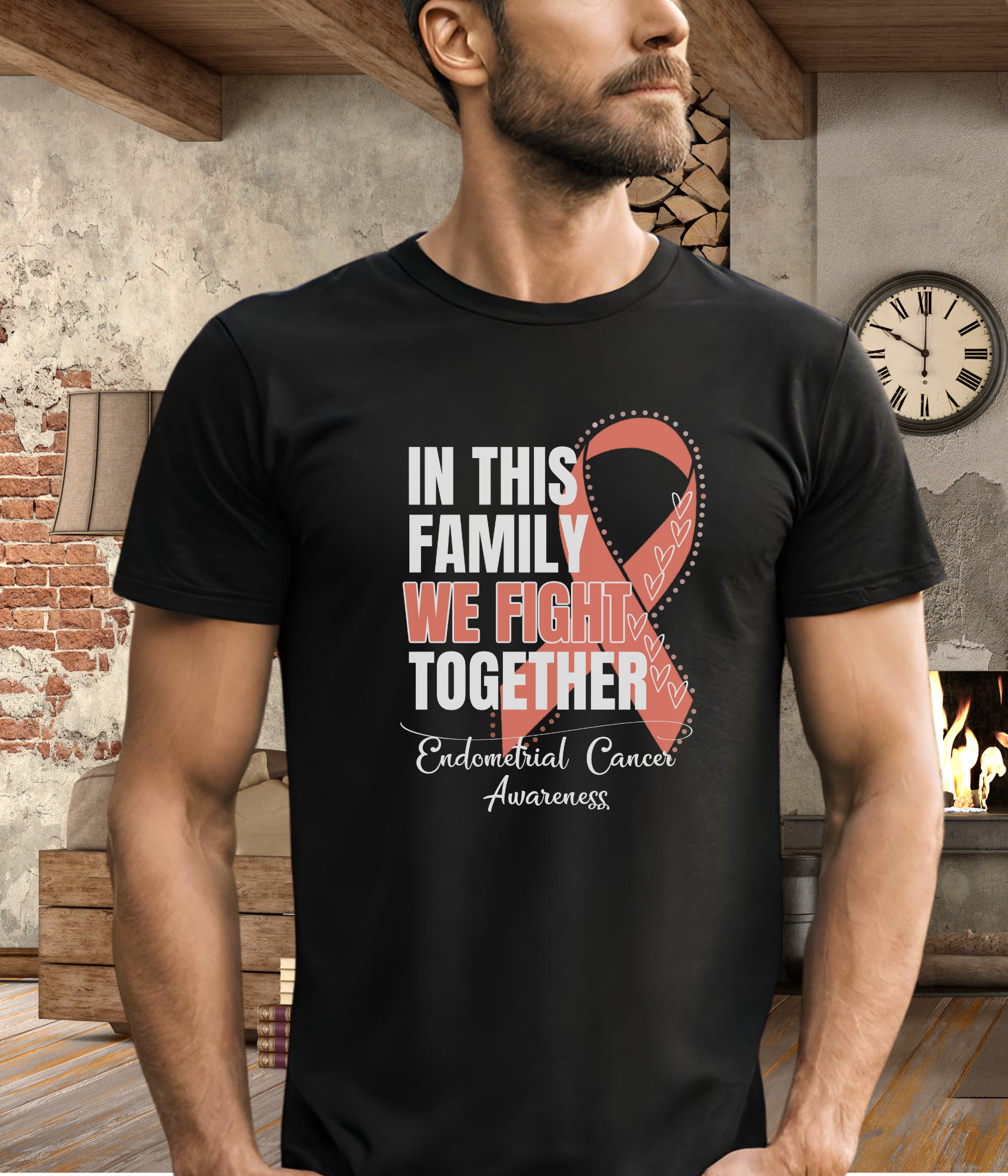 • Support your loved one in style with this Endometrial Cancer shirt. Our 'In this Family We Fight Together- Endometrial Cancer Awareness' unisex tee is the perfect blend of comfort and purpose.