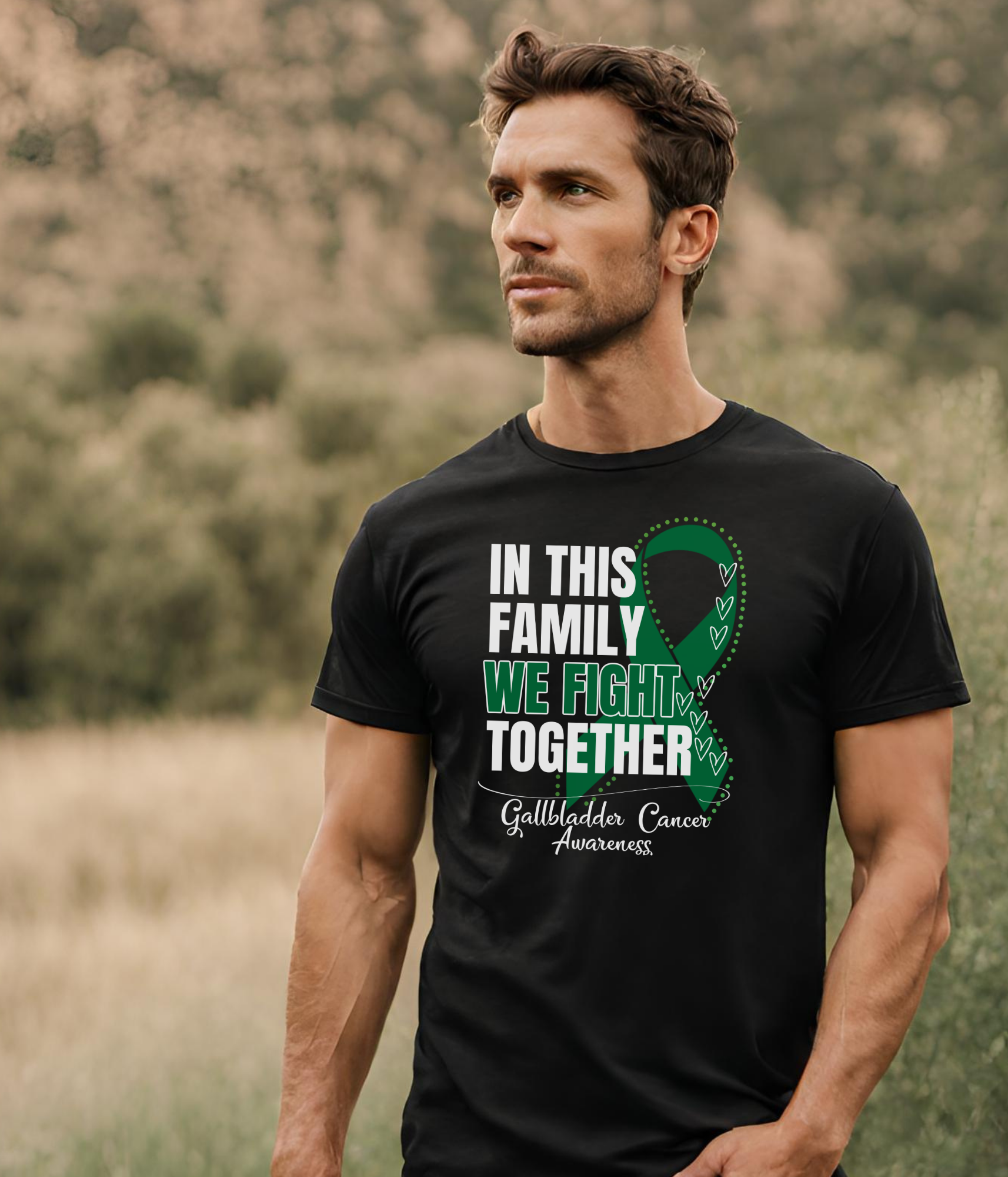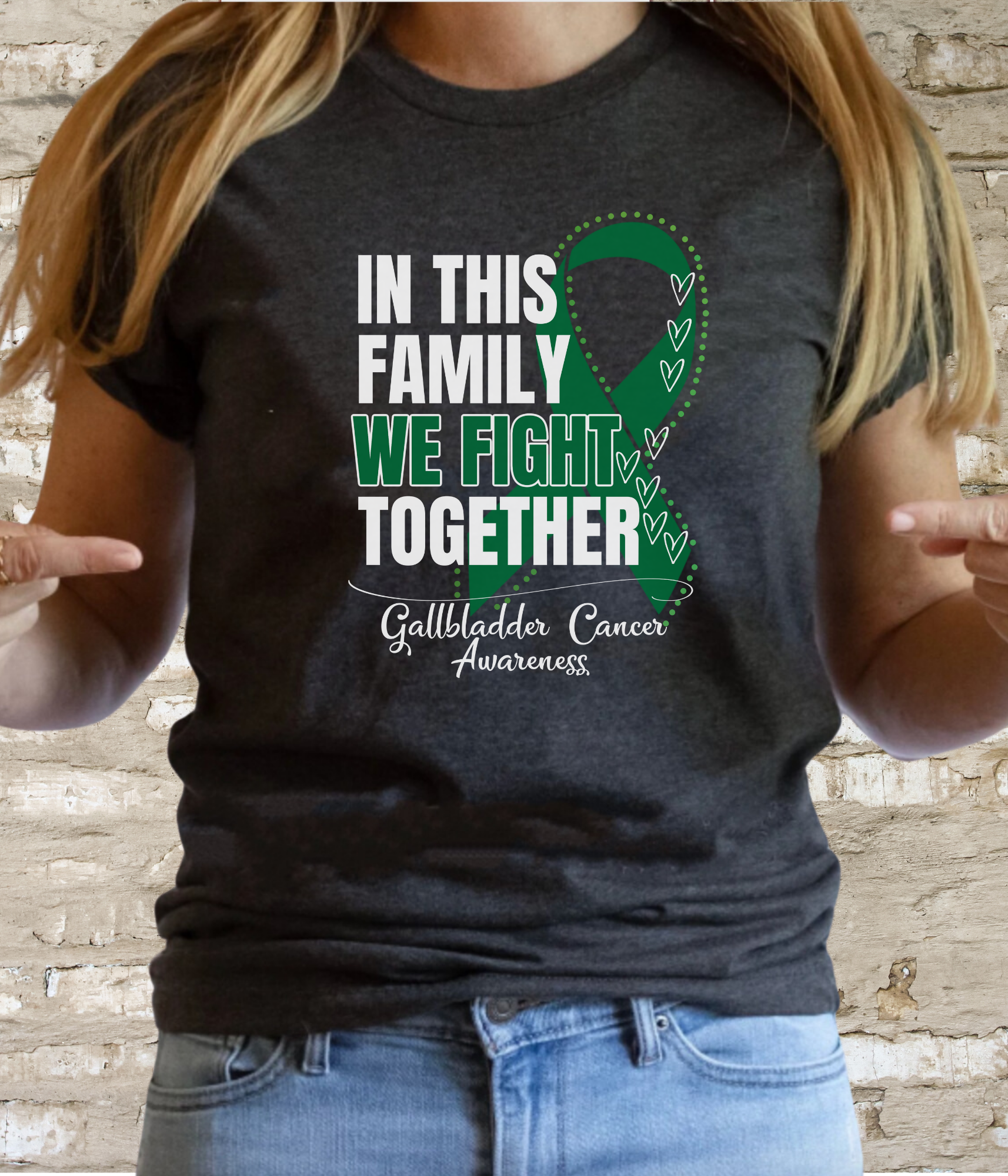 • Support your loved one in style with this Gallbladder Cancer shirt. Our 'In this Family We Fight Together- Gallbladder Cancer Awareness' unisex tee is the perfect blend of comfort and purpose.