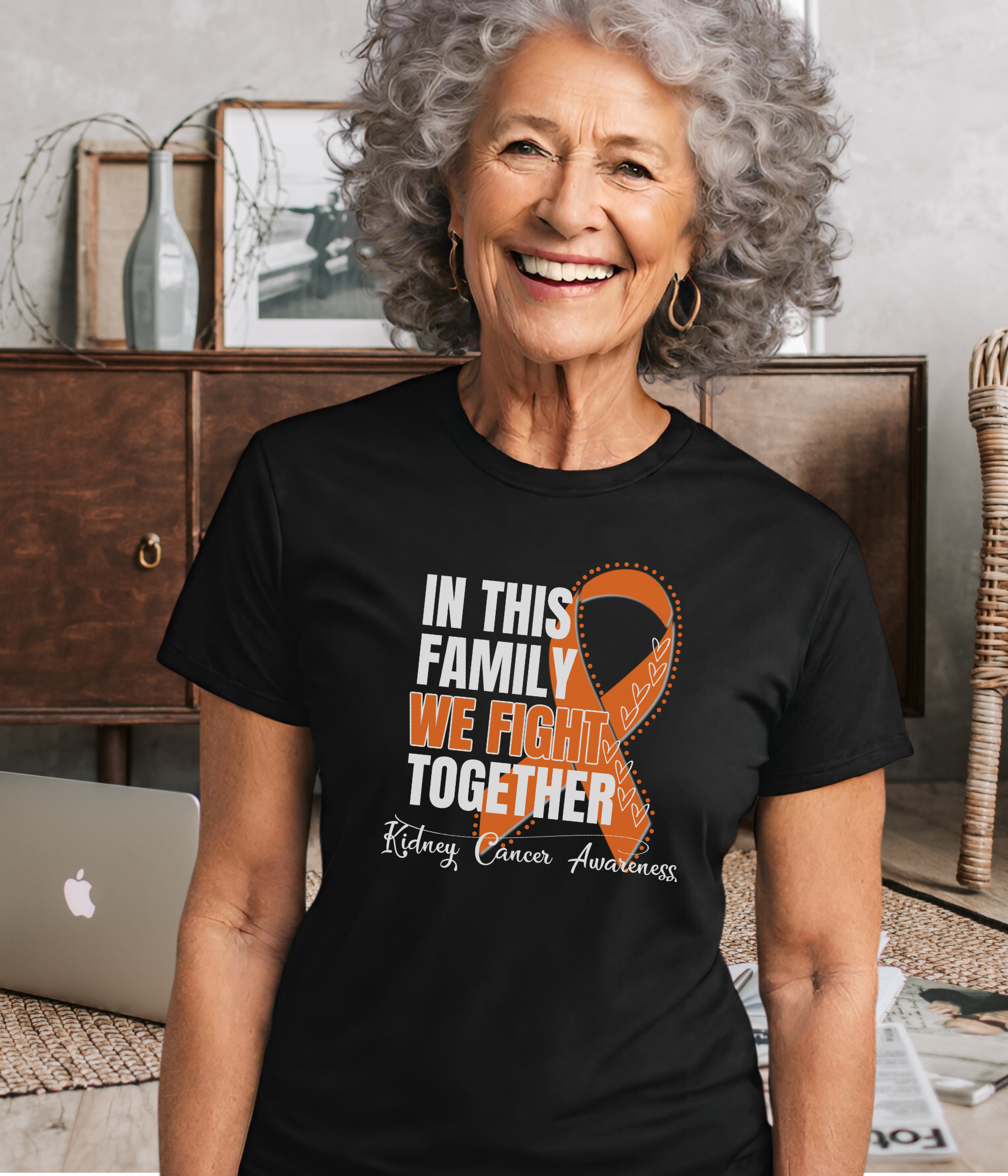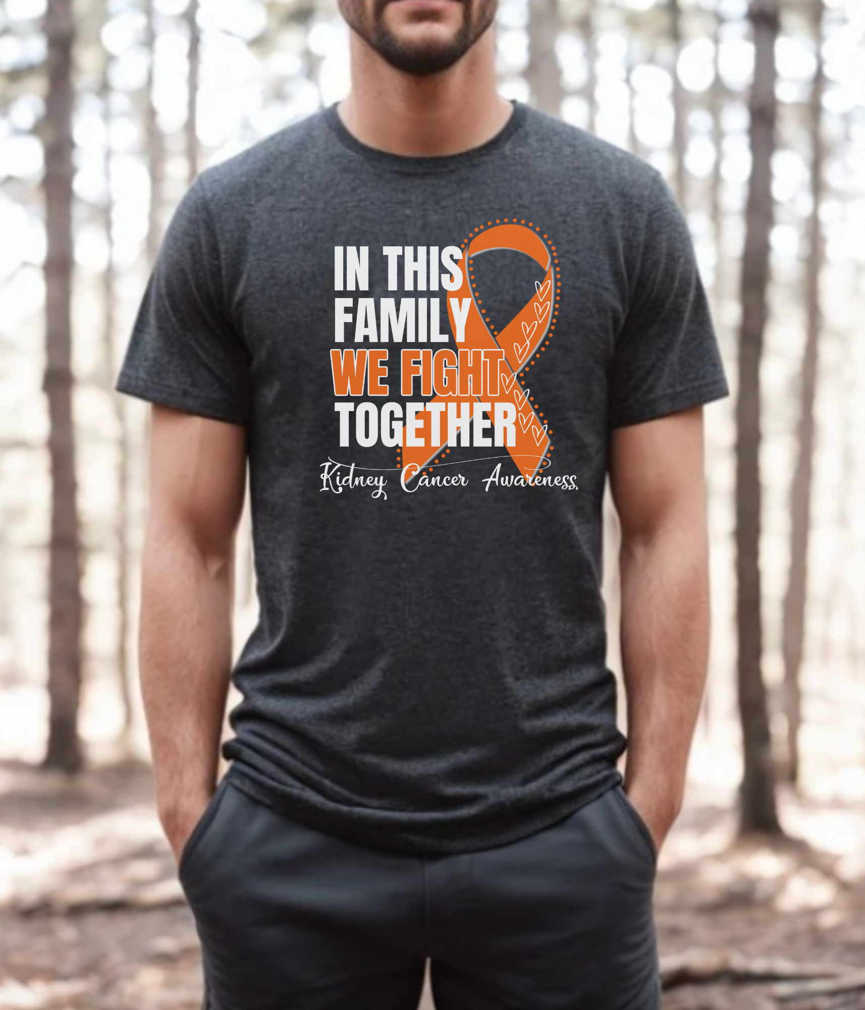 • Support your loved one in style with this Kidney Cancer shirt. Our 'In this Family We Fight Together- Kidney Cancer Awareness' unisex tee is the perfect blend of comfort and purpose.