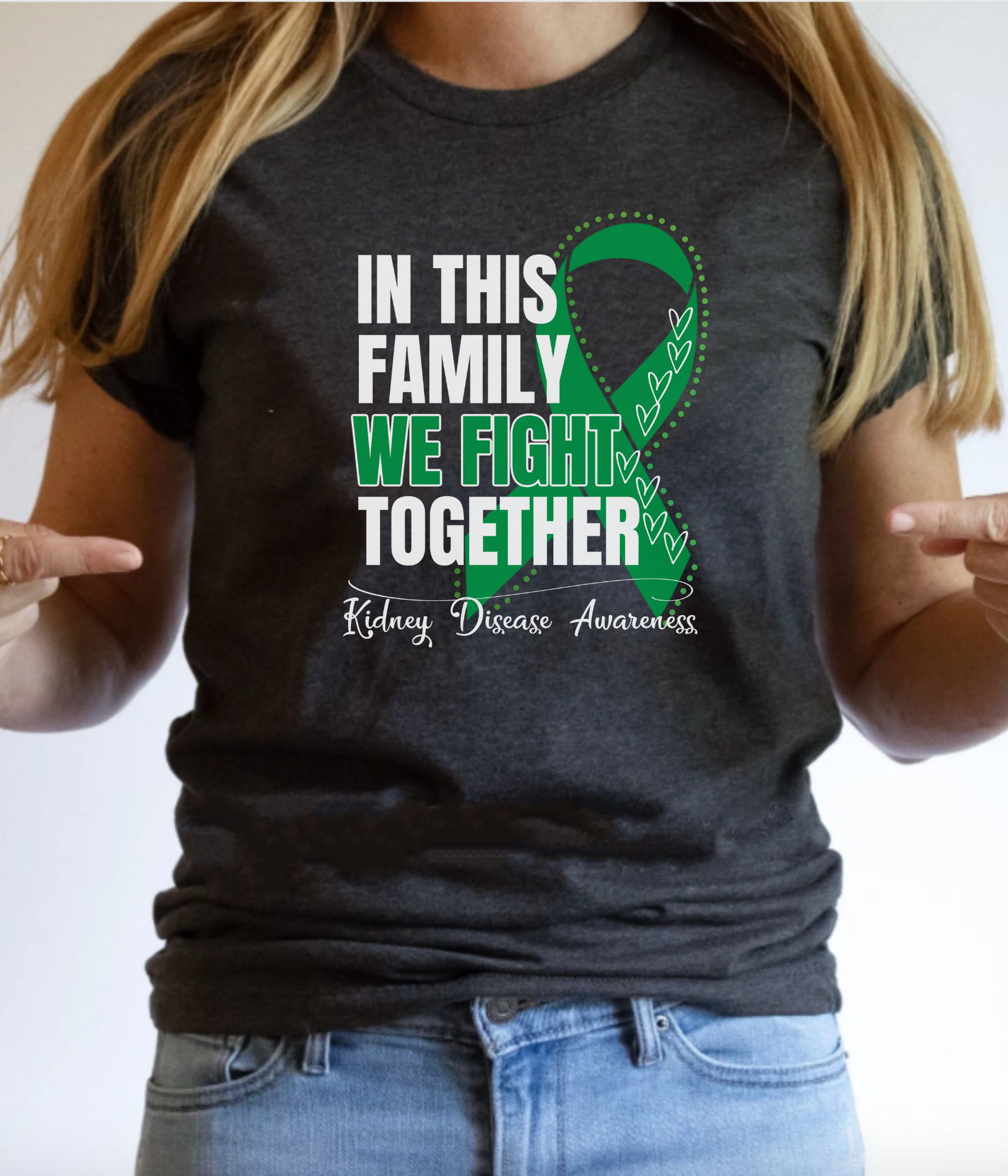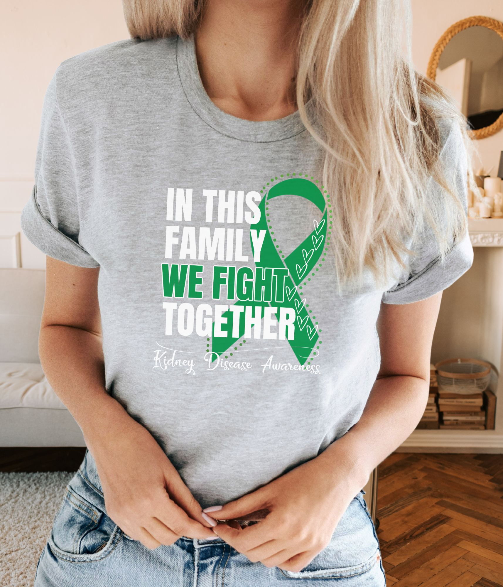 • Support your loved one in style with this Kidney Disease shirt. Our 'In this Family We Fight Together- Kidney Disease Awareness' unisex tee is the perfect blend of comfort and purpose.