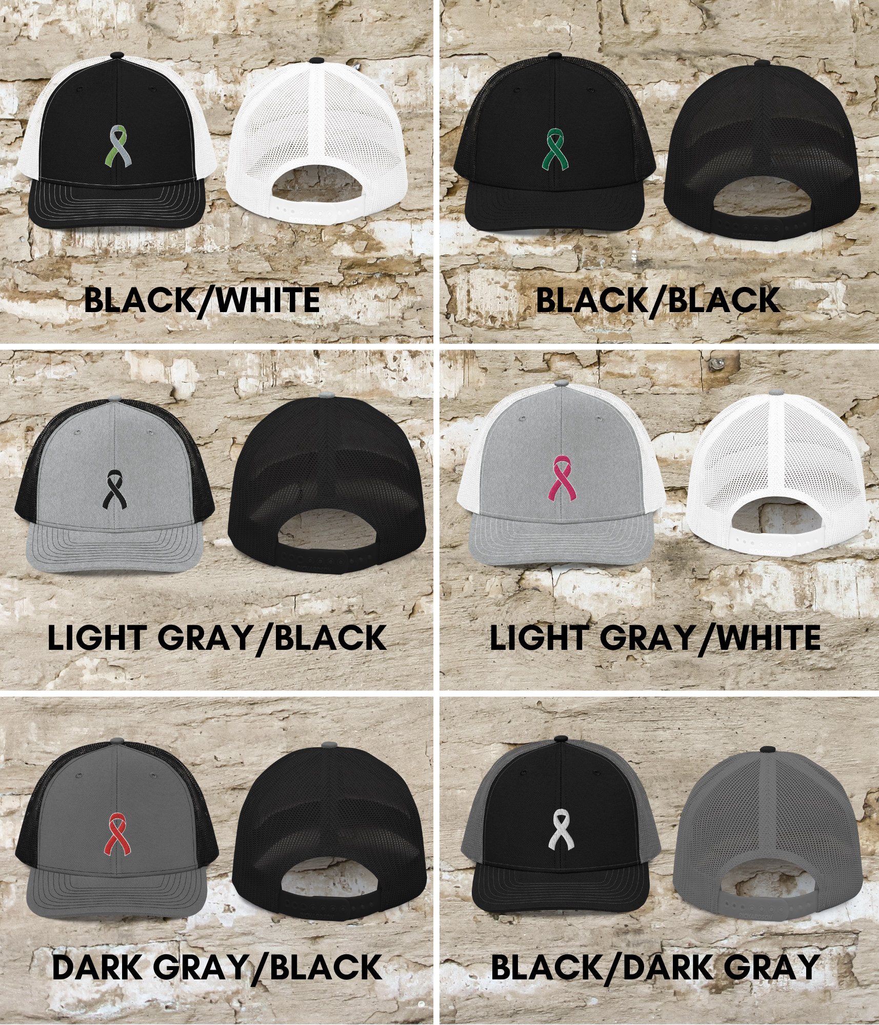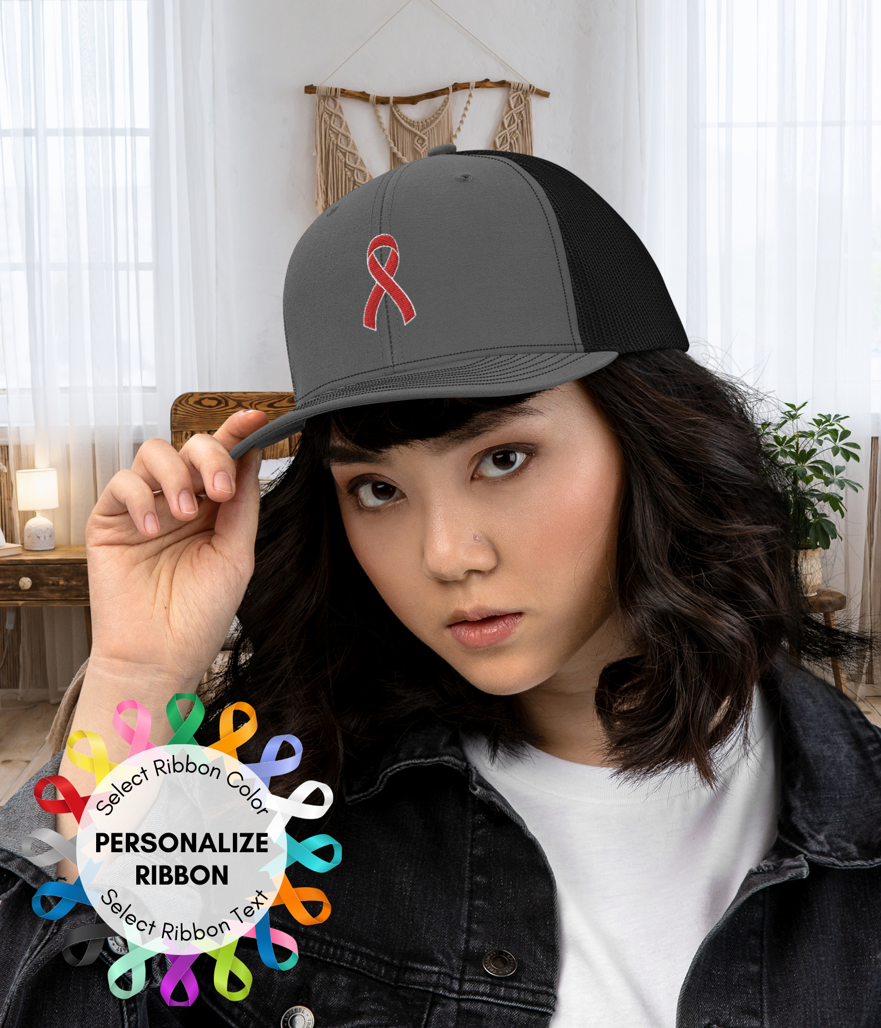 • Support your loved one in style with this custom embroidered awareness snapback trucker cap. Featuring the diagnosis unique to you or your loved one- this adjustable snapback cap is available in several color combinations. Order one or order in bulk to make a large supportive statement.