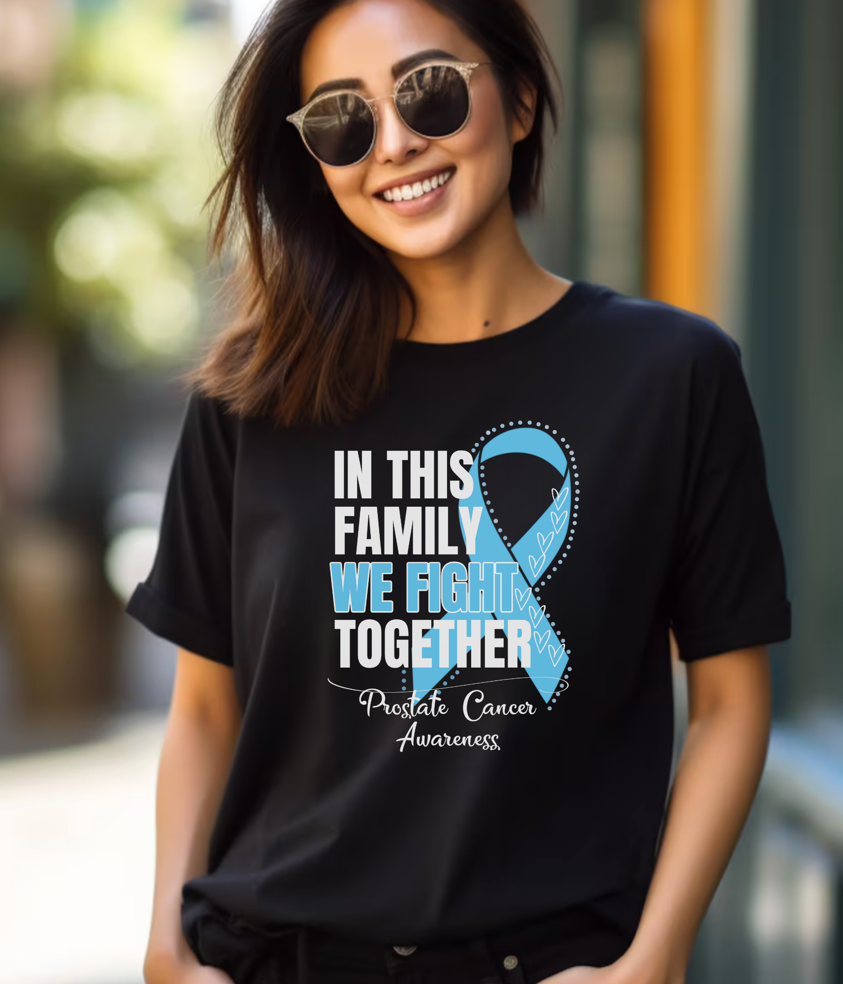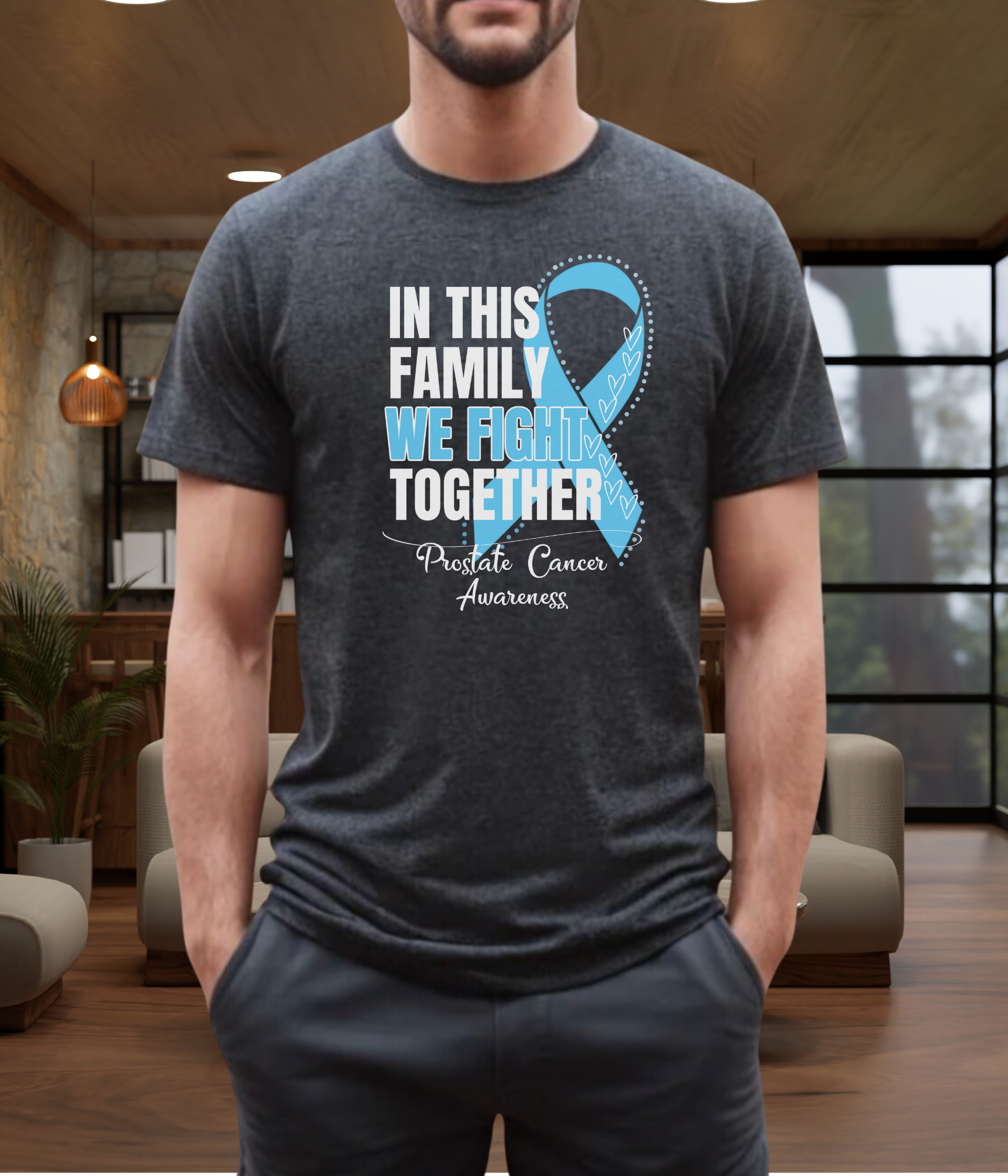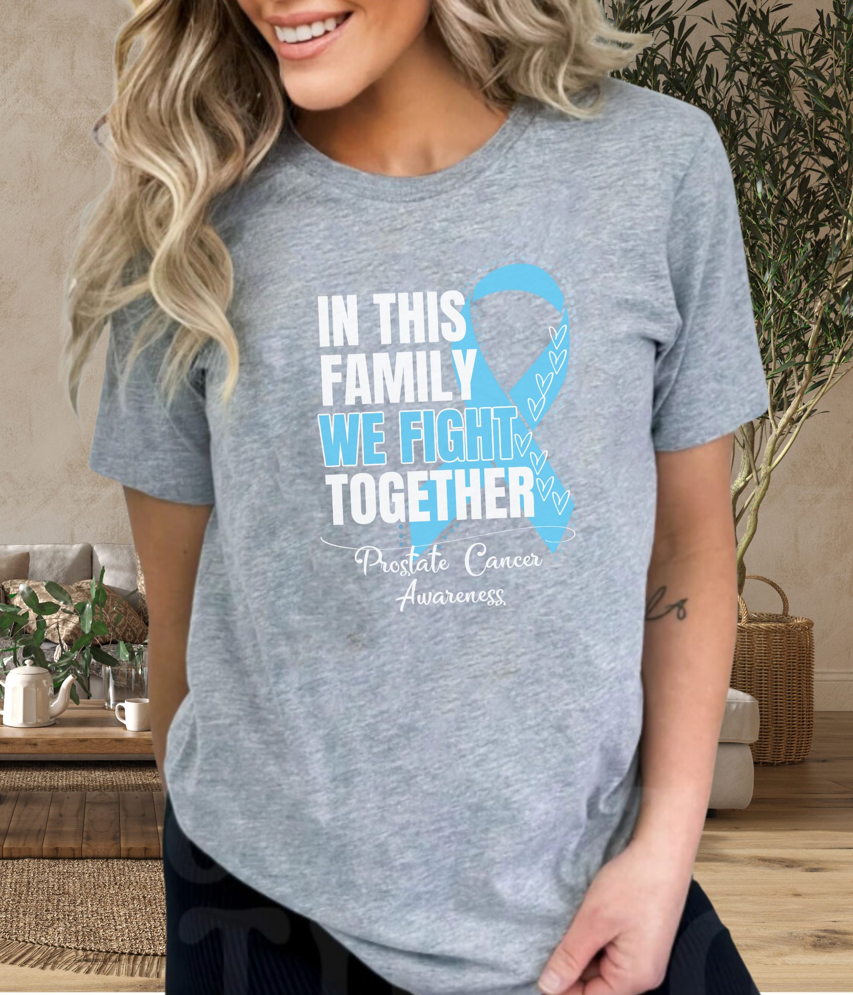 • Support your loved one in style with this Prostate Cancer shirt. Our 'In this Family We Fight Together- Prostate Cancer Awareness' unisex tee is the perfect blend of comfort and purpose.