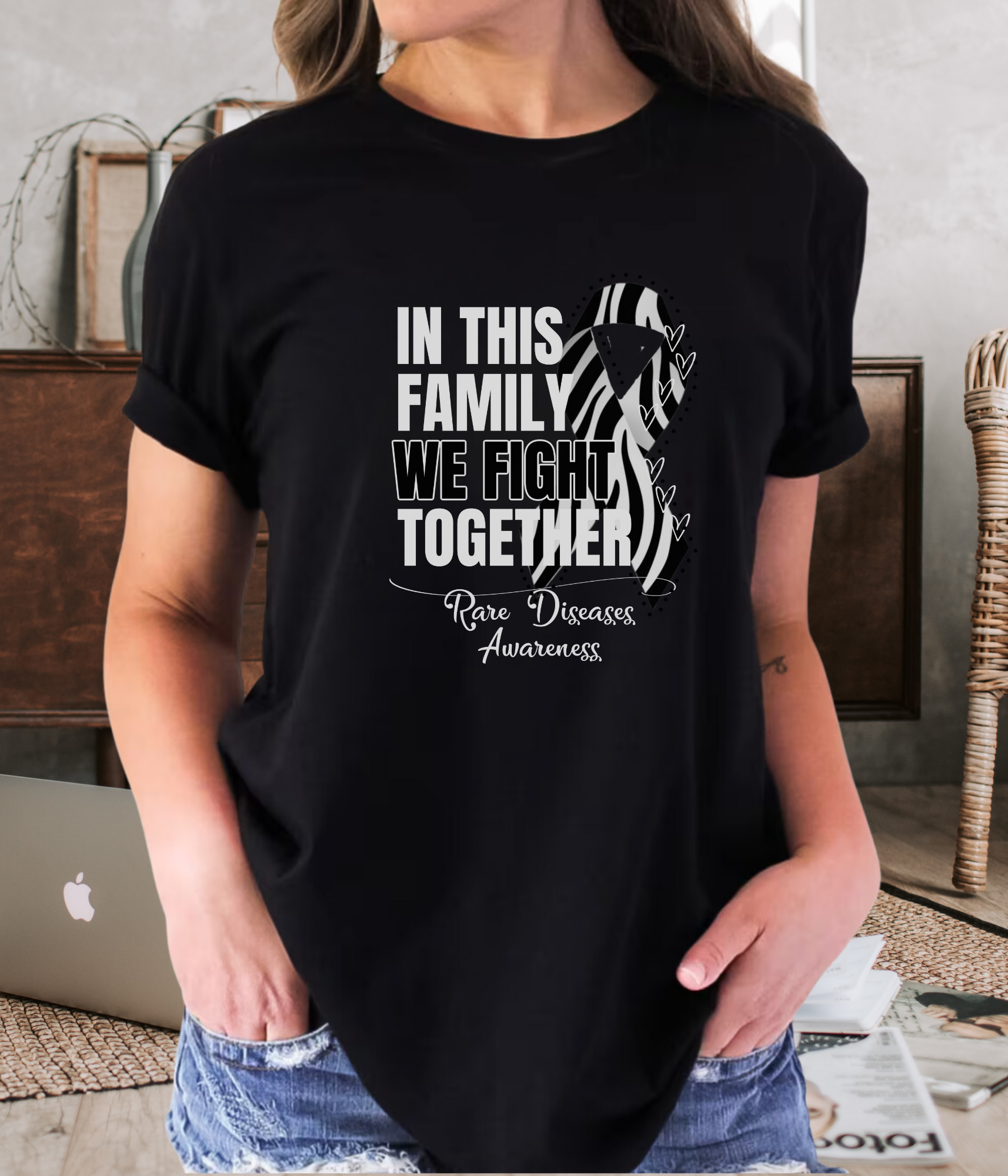 • Support your loved one in style with this Rare Diseases shirt. Our 'In this Family We Fight Together- Rare Diseases Awareness' unisex tee is the perfect blend of comfort and purpose.