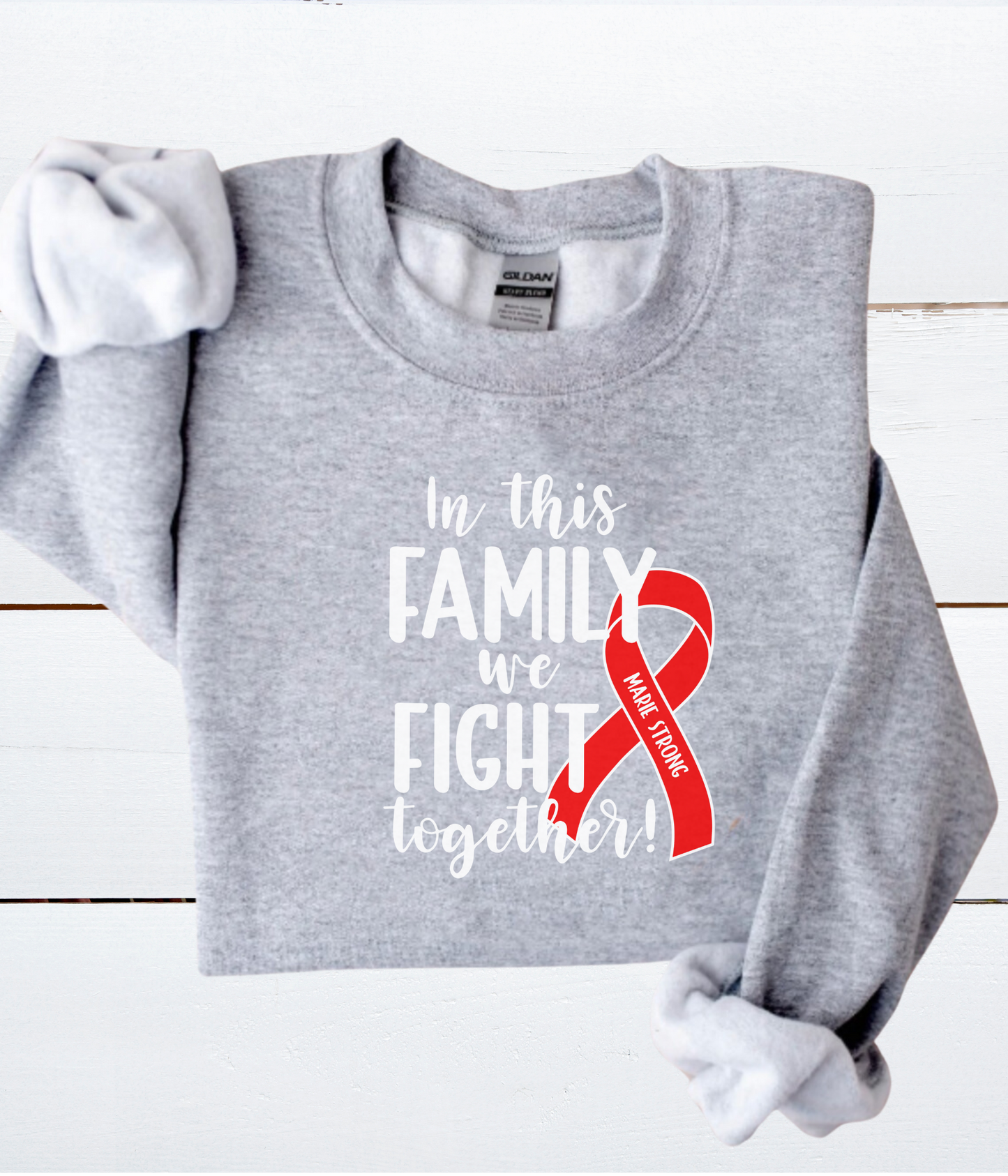 • Support your loved one in style with this Stroke shirt personalized with their name in the ribbon. Our 'In this Family We Fight Together' unisex tee is the perfect blend of comfort and purpose. Perfect for ordering in bulk to make a large supportive statement.